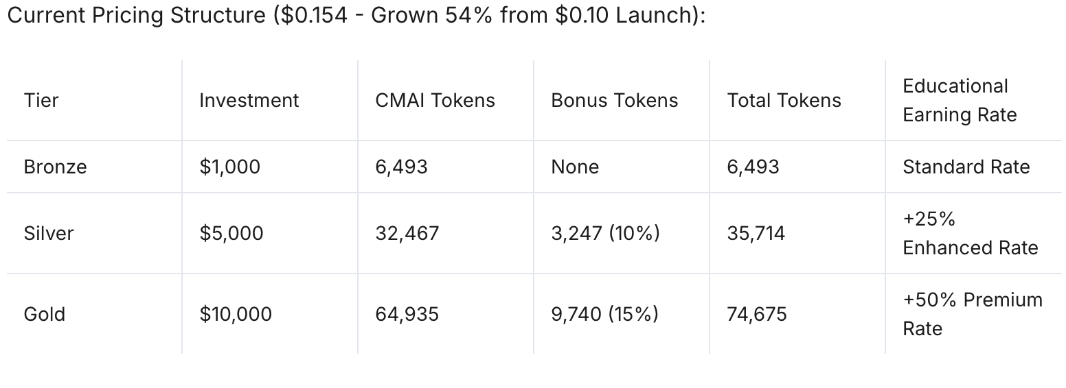 - 115,000 total CMAI tokens (100,000 + 15,000 bonus)