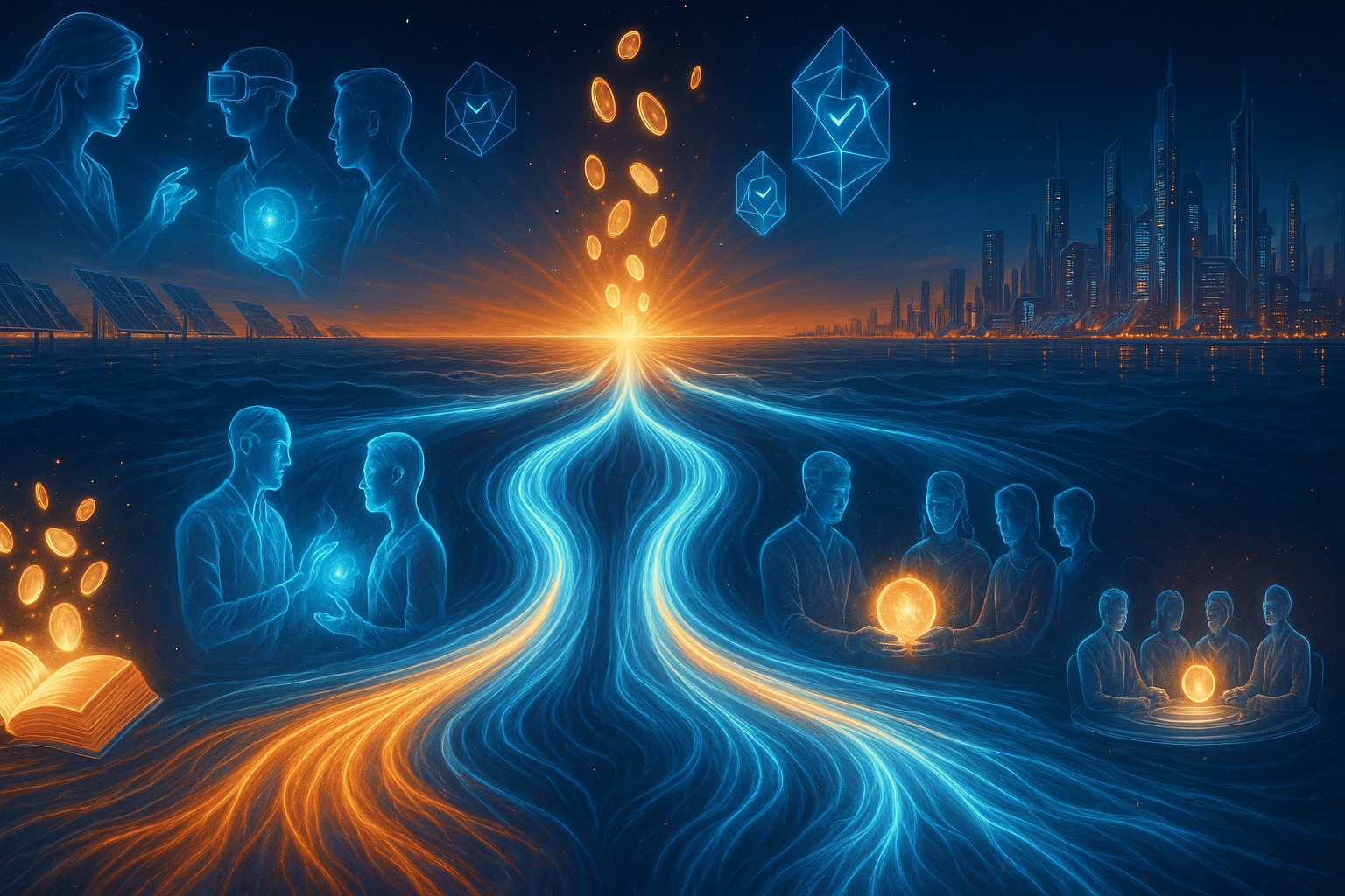 - Value creation transcends traditional money through AI-optimized exchanges